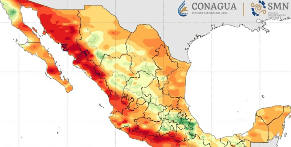 - Temperaturas máximas superiores a 45 °C: Sonora, Sinaloa y Durango (occidente).