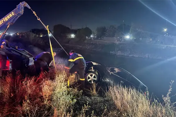 El otro accidente se registró también la noche de este sábado 12 de abril, pero sobre el canal de riego que corre paralelo a la carretera que conduce hacia el Cerro Cabezón, municipio de Guasave, a la altura de la calle 500.