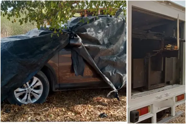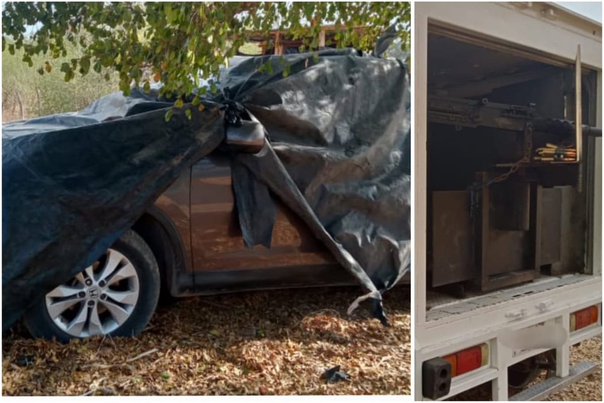 Durante recorridos terrestres en el poblado de La Pedrera, en la capital del estado, el personal militar localizó dos vehículos; se trata de una camioneta con caja cerrada que tenía empotrada una ametralladora calibre .50 y una SUV con reporte de robo.