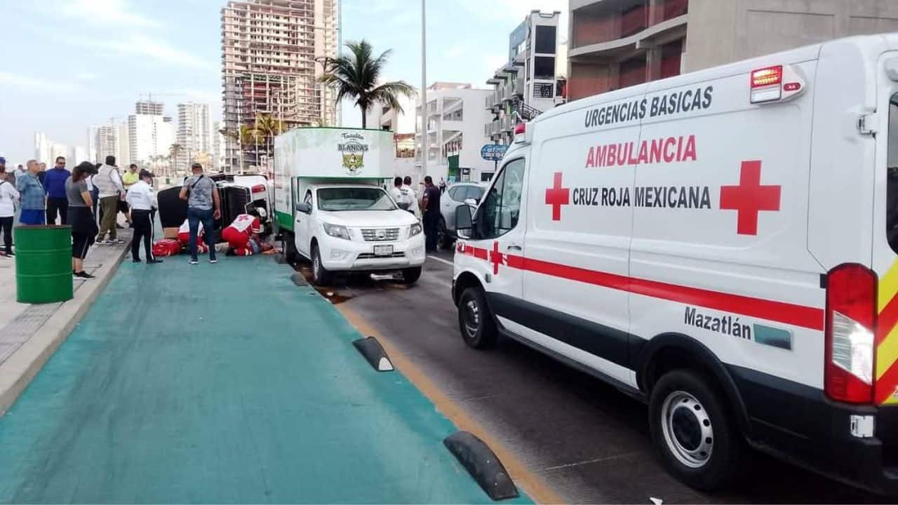 Vuelca pulmonía tras ser chocada por alcance en el malecón de Mazatlán; hay un lesionado