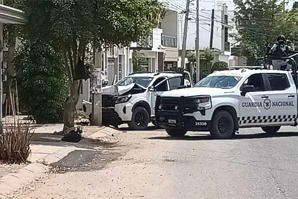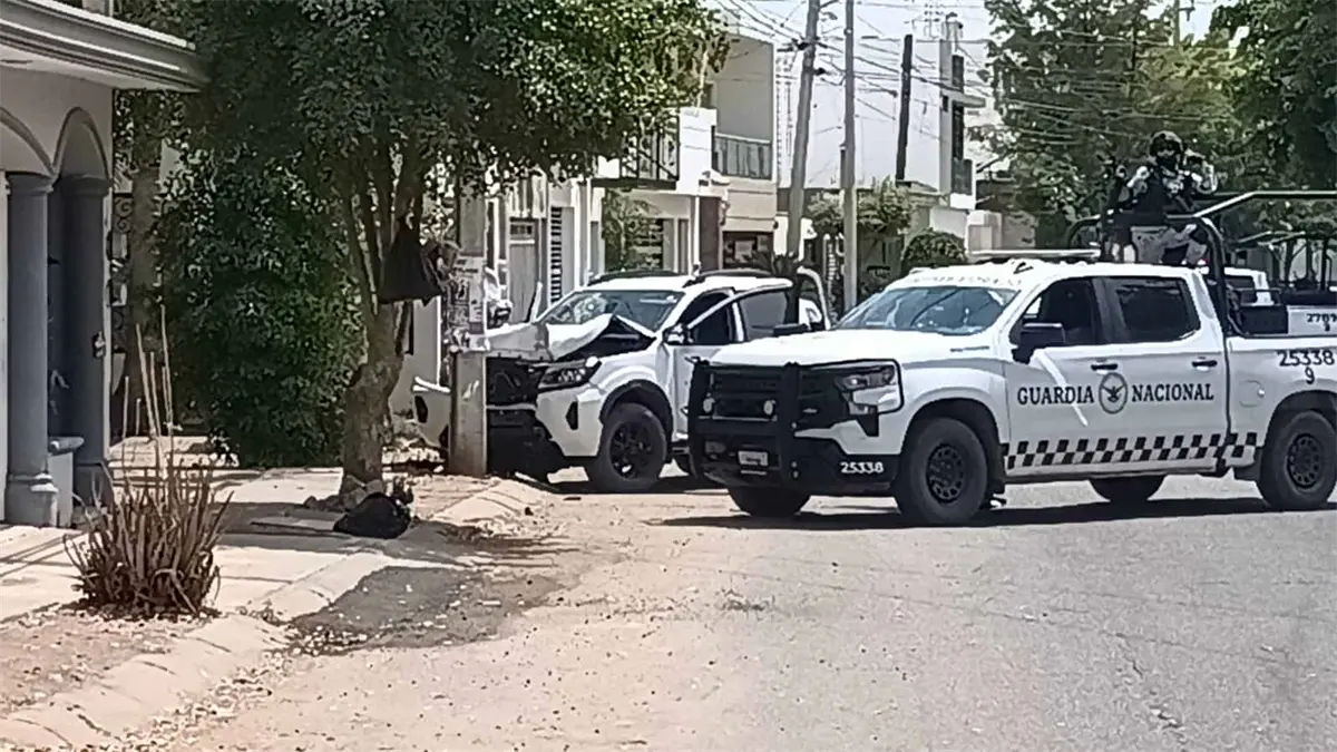 Elementos de la Guardia Nacional aseguraron una camioneta durante una persecución y balacera en el fraccionamiento Riberas de Tamazula al oriente de Culiacán.