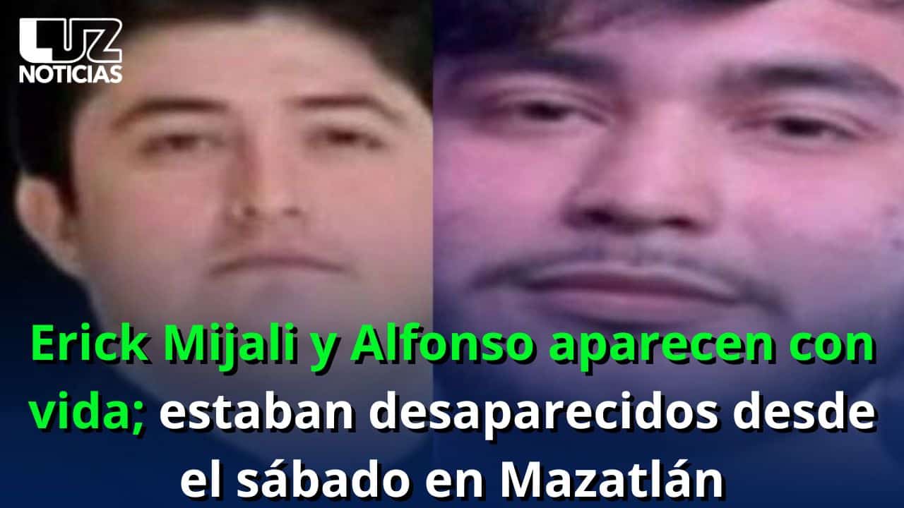Erick Mijali y Alfonso aparecen con vida; estaban desaparecidos desde el sábado en Mazatlán