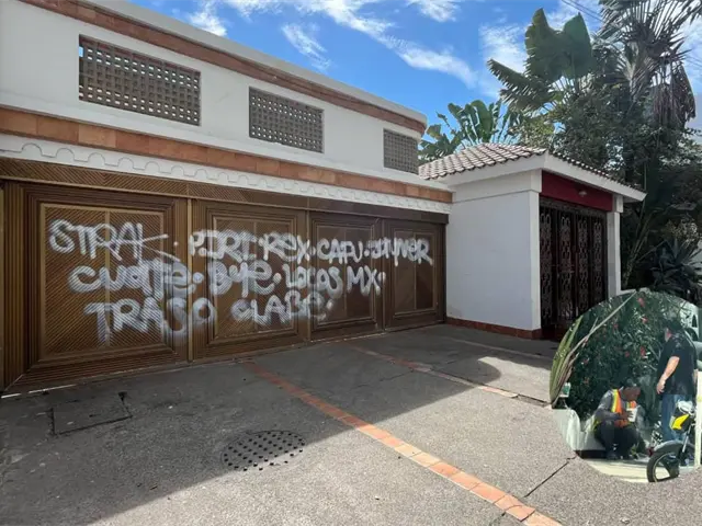 Y aunque parecía que todo había terminado ahí, este viernes se reavivó la polémica con la aparición de estas pintas en el portón de la cochera del inmueble, propiedad de quien se identificó como José Ignacio Lizárraga Pérez, abogado de origen mazatleco.