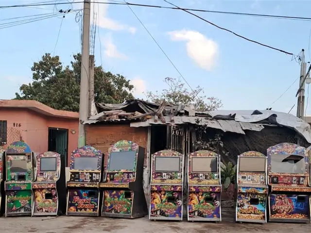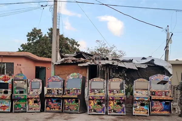 En una segunda acción, en las colonias Pancho Villa e Insurgentes en Mazatlán, se localizaron y aseguraron 15 máquinas tragamonedas denominadas "habichuelas" que se encontraban afuera de un local improvisado.