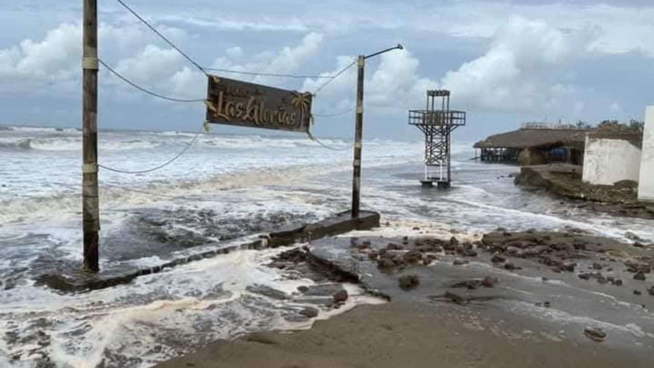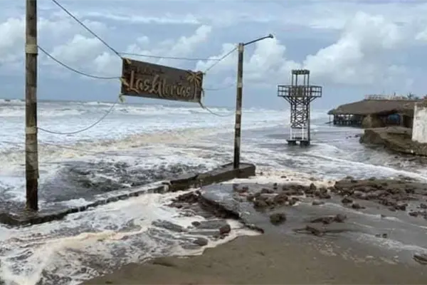 Mar de fondo provoca sorpresiva inundación en playa Las Glorias, Guasave