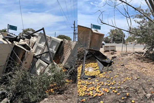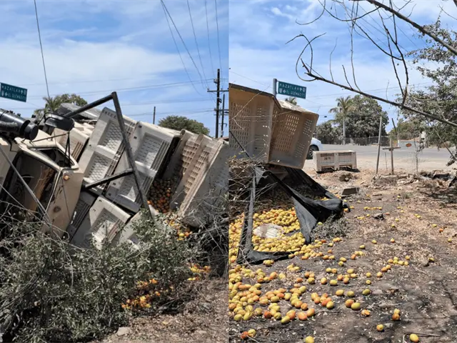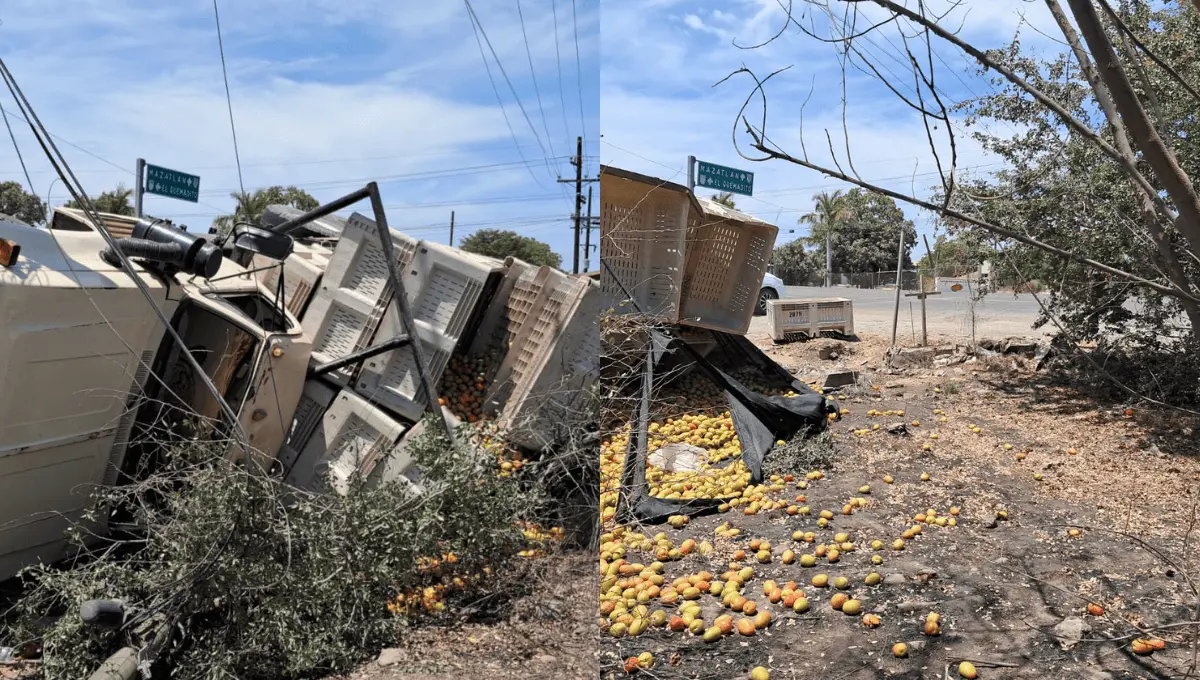 Un camión cargado con varias toneladas de tomate quedó volcado en la zona del Quemadito de la sindicatura Costa Rica.