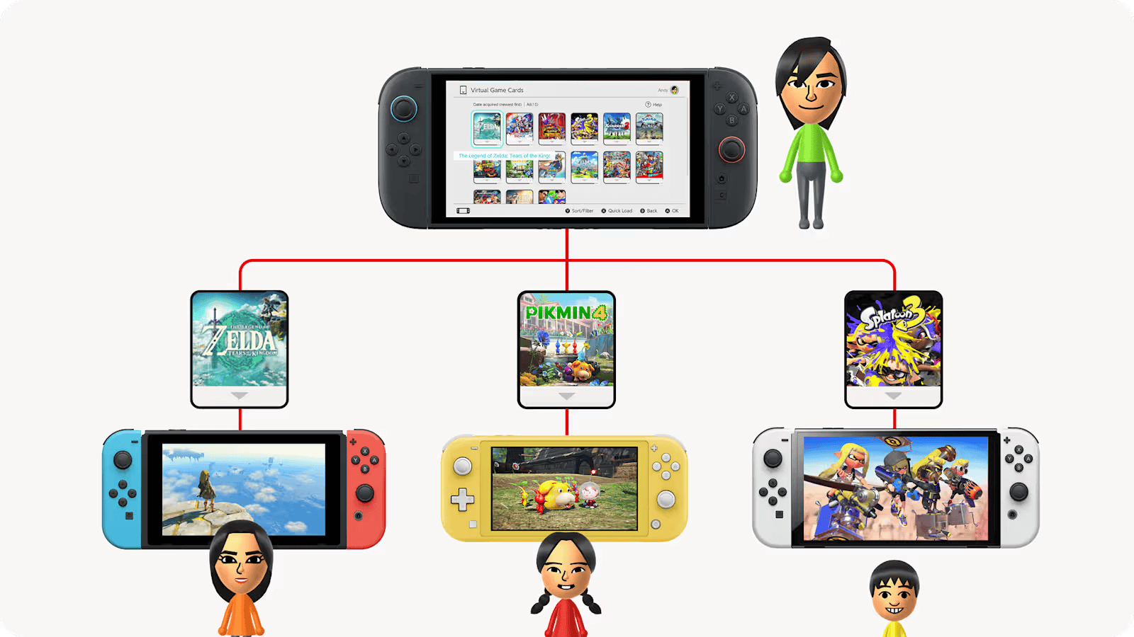 Este nuevo sistema de préstamo se diferencia del actual esquema de cuentas primarias y secundarias, enfocándose en la conectividad local entre consolas de la familia Switch (estándar, Lite y OLED) y en la pertenencia a un grupo familiar de hasta ocho miembros dentro del servicio Nintendo Switch Online.