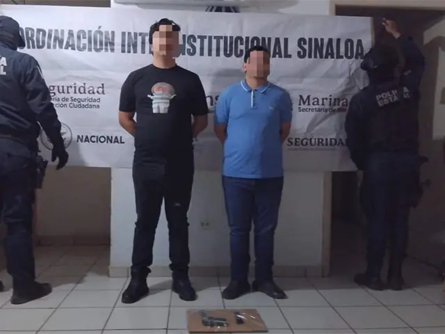 Los elementos de la Secretaría de Seguridad Pública de Sinaloa, a través de la Policía Estatal Preventiva, en coordinación con el Ejército Mexicano, la Guardia Nacional, la Secretaría de Marina Armada de México, la Fiscalía General de la República y la Fiscalía General del Estado, detuvieron a dos individuos con arma de fuego en Culiacán.