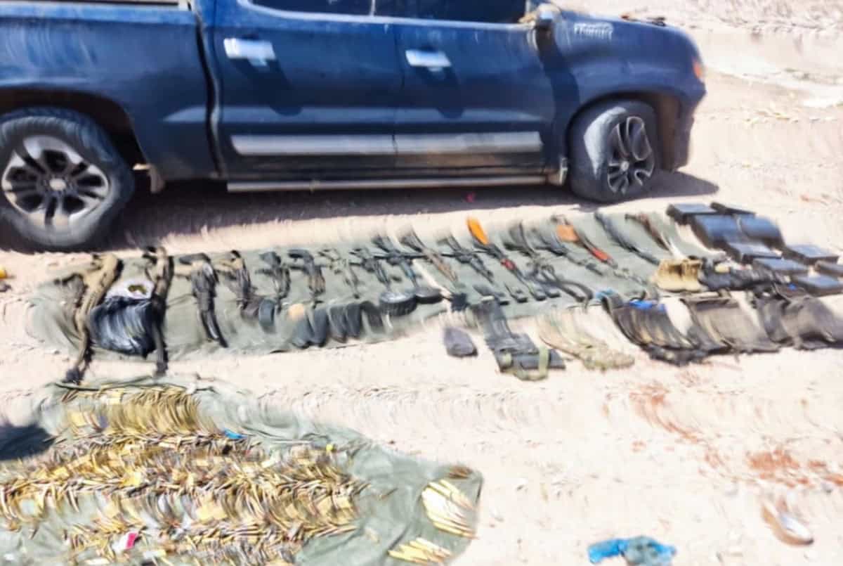 Al interior de los vehículos se contabilizaron 17 armas largas y 1 arma corta, así como 18 cargadores y mil 340 cartuchos útiles de diferentes calibres.