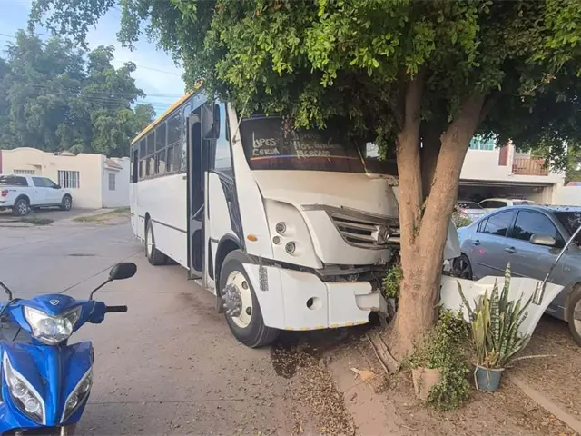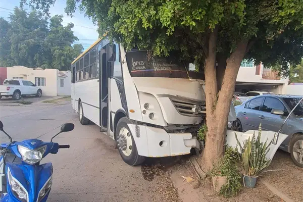 La unidad de transporte público terminó impactada contra un árbol ornamental sin generar daños mayores.
