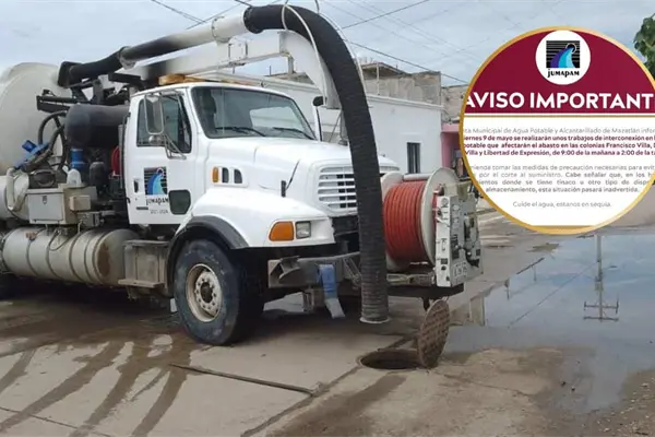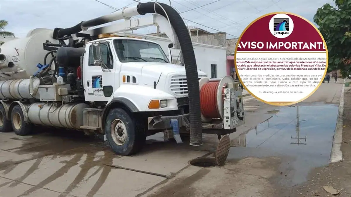 La Junta Municipal de Agua Potable y Alcantarillado de Mazatlán (JUMAPAM) ha lanzado un comunicado para dar a conocer el corte al suministro del agua que se tiene programado para este viernes 9 de mayo.