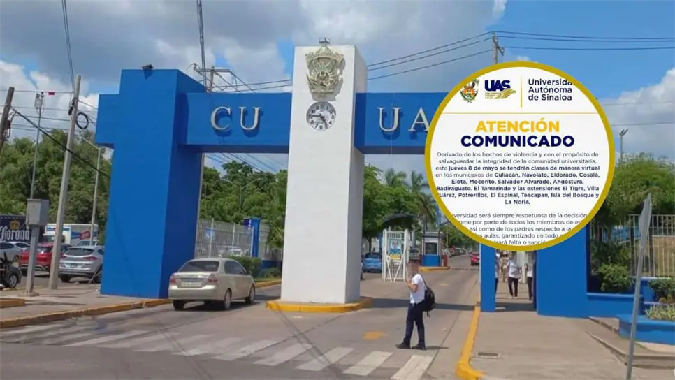 Por la violencia registrada en las últimas horas, la Universidad Autónoma de Sinaloa (UAS) tendrá clases virtuales en 9 municipios este jueves 8 de mayo, así lo informó mediante un comunicado oficial.