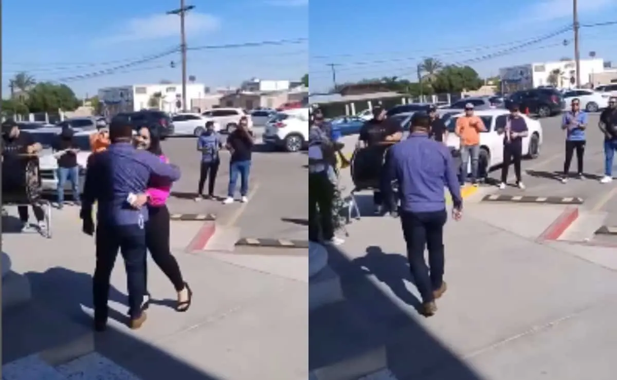 En un video viral en redes sociales compartido por la usuaria “Fernanda Romero” se puede ver como un hombre va saliendo de lo que parece ser el Juzgado de Primera Instancia de lo Civil o de lo Familiar del Poder Judicial del Estado, ubicado en San Luis Río Colorado, en Sonora.