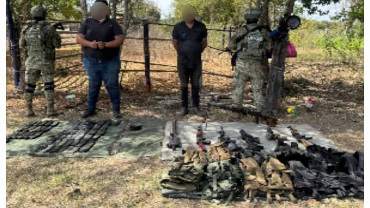 Elementos del Ejército Mexicano, en coordinación con la Guardia Nacional, la Secretaría de Marina, la Secretaría de Seguridad y Protección Ciudadana, la Fiscalía General de la República, la Fiscalía General del Estado y la Secretaría de Seguridad Pública Estatal, a través de la Policía Estatal Preventiva, detuvieron a dos civiles en posesión de armas, municiones y vehículos en el municipio de Elota.