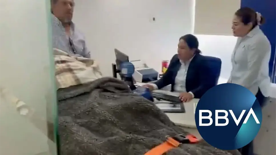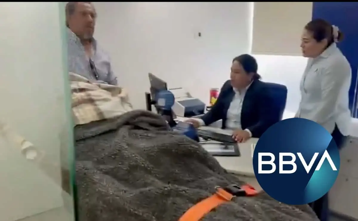 Critican a BBVA por obligar a una mujer de 96 a acudir a sucursal para cobrar su pensión en camilla