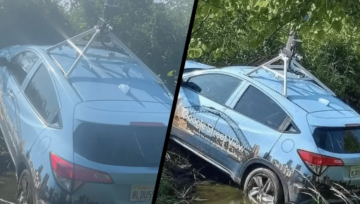 De acuerdo al medio Auto Bild, el hecho real se registró en agosto del 2023, cuando el conductor de un coche de Google Street View cayó a una zanja luego de que fuera perseguido por elementos de la policía en un pueblo de Indiana, Estados Unidos.