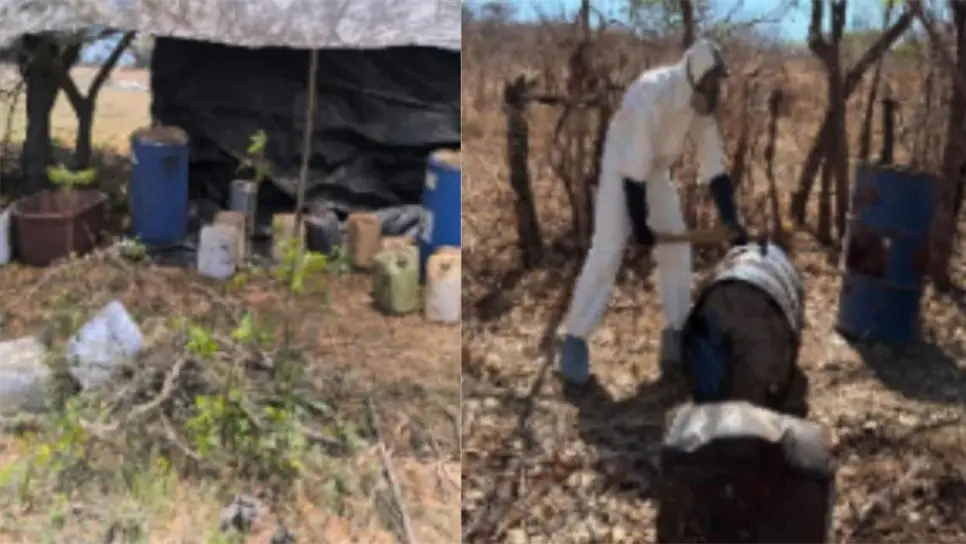 Durante acciones diferentes en los municipios de Culiacán y Elota, las autoridades aseguraron un laboratorio y una zona donde había varias sustancias químicas.
