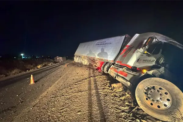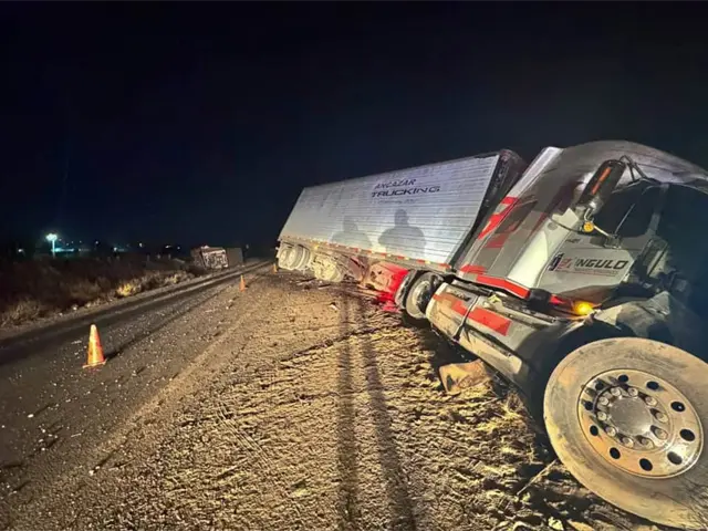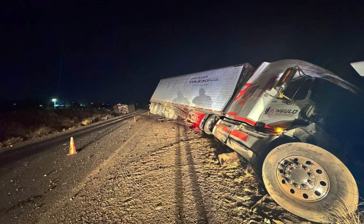 Un fuerte accidente se registró durante la madrugada de este viernes sobre la carretera federal México 15, a la altura de San Miguel Zapotitlán, en el municipio de Ahome, cuando un tráiler que transportaba dos cajas refrigeradas terminó volcado tras perder el control.