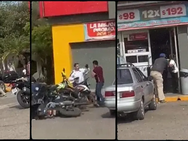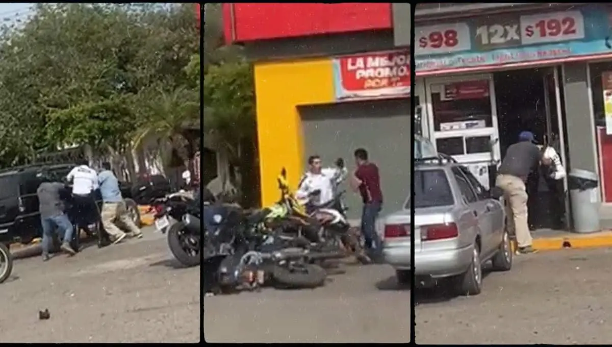 Tránsitos y motociclistas se traman a golpes afuera de un súper en Los Mochis