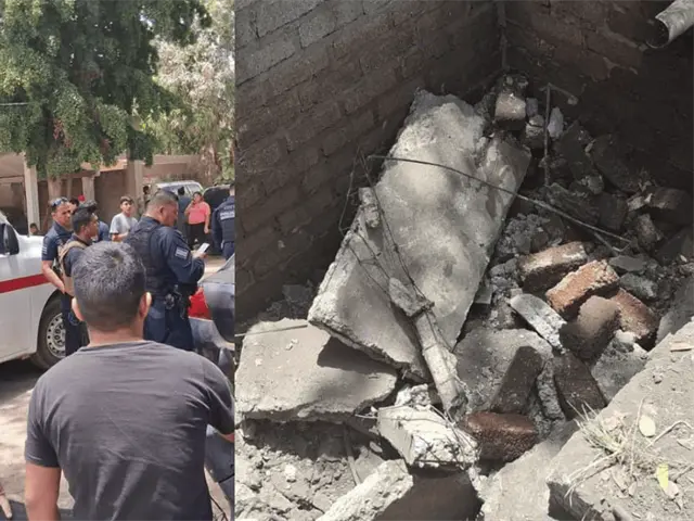 Al romperse el concreto, los pequeños cayeron aproximadamente dos metros al interior de la fosa, quedando atrapados entre los escombros.