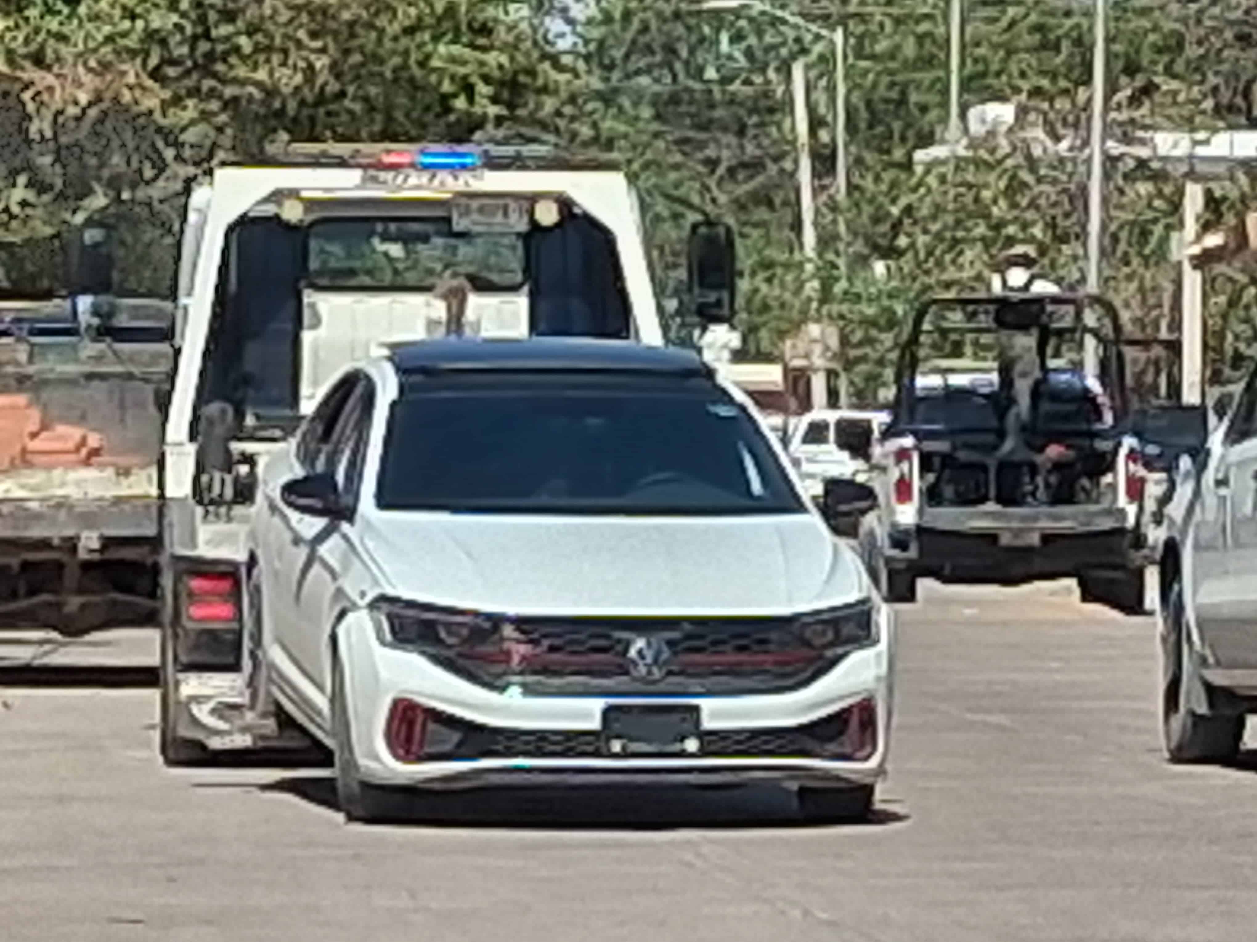 Otro de los carros asegurados, se trata de un Volkswagen Jetta, color blanco de modelo reciente, el cual contaba con disparos de arma de fuego en su carrocería y los cristales traseros.