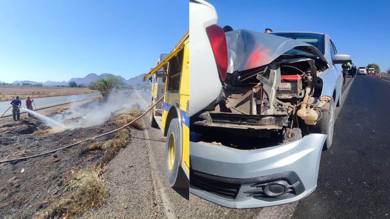 Por su parte los elementos de Bomberos de Los Mochis, arribaron al lugar y se hicieron cargo de sofocar el fuego que mantenía la humareda sobre la carretera federal, y de este modo evitar más accidentes.