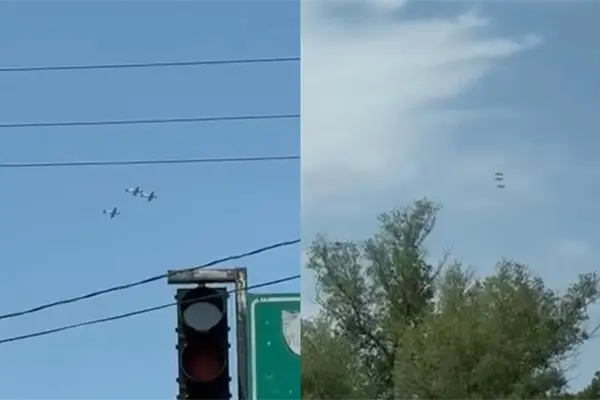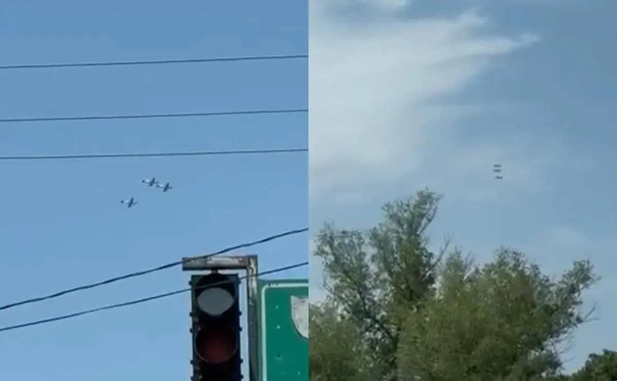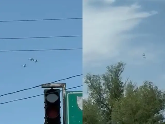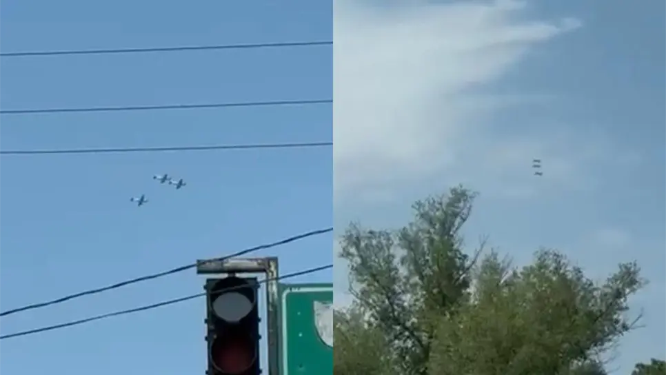 Los videos muestran a las aeronaves volando en línea recta y en perfecta formación, lo que sugiere un ejercicio coordinado propio de las Fuerzas Armadas.