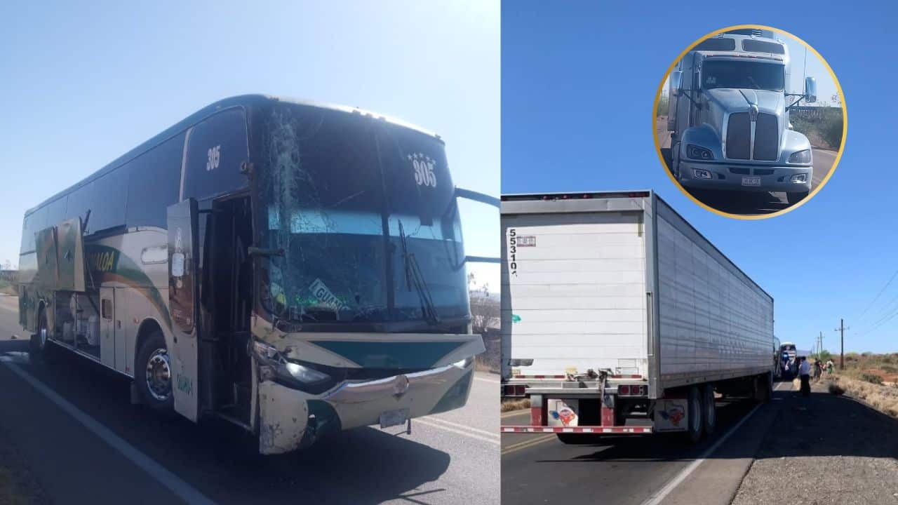 La colisión fue protagonizada por un tractocamión de la marca Kenworth, de color azul, con caja refrigerada, y un autobús de pasajeros de la línea Autotransportes del Norte de Sinaloa, marcado con el número económico 305.
