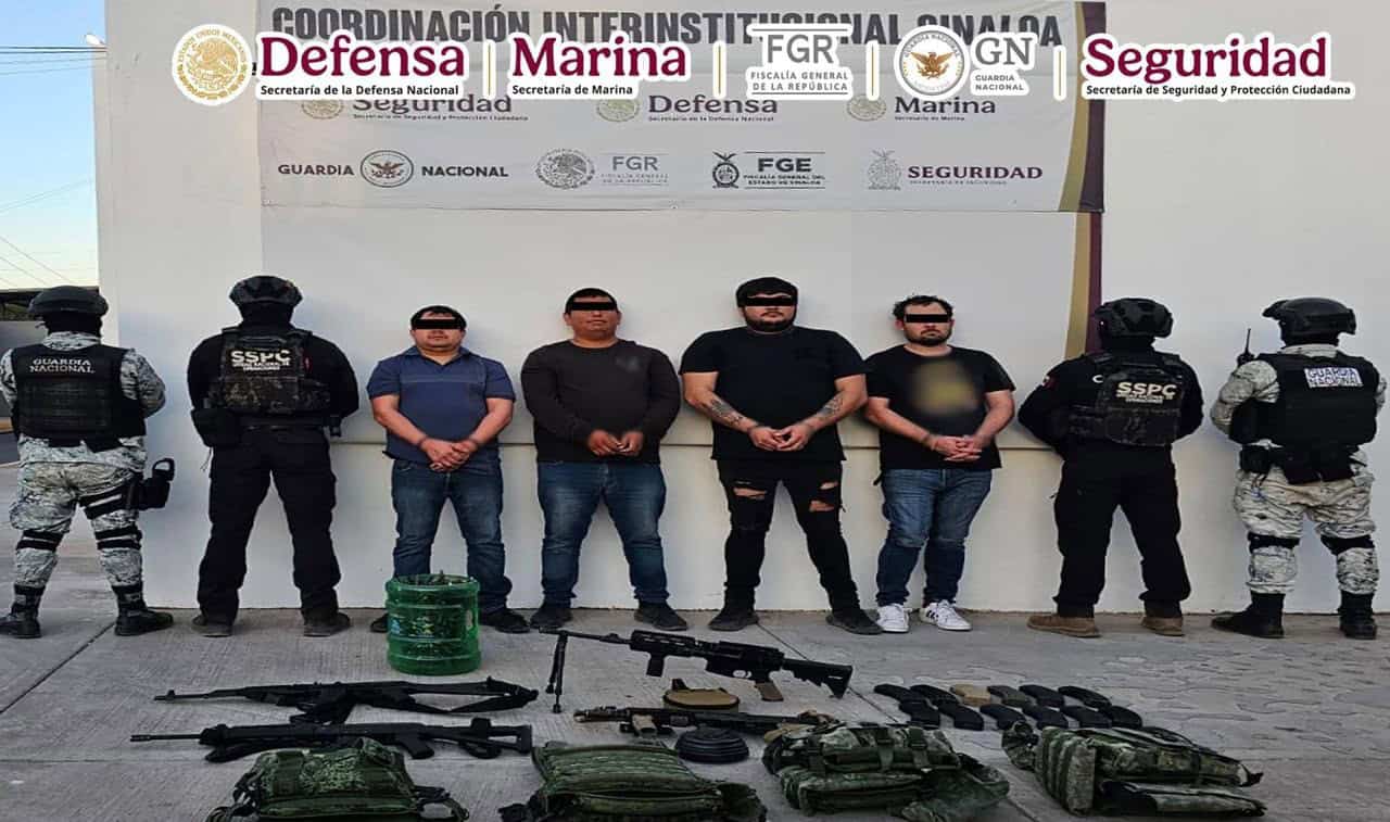 A los sujetos les aseguraron armas largas, un vehículo robado, ponchallantas y equipo táctico.