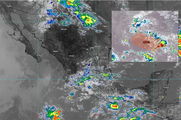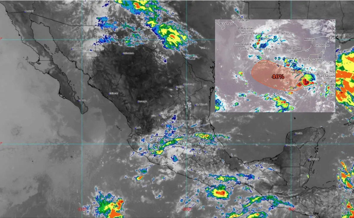 El pronóstico del SMN indica que esta zona de baja presión mantiene un 40% de probabilidad de desarrollo ciclónico y, de hacerlo, podría estarse formando este fin de semana que es 9 y 10 de junio.