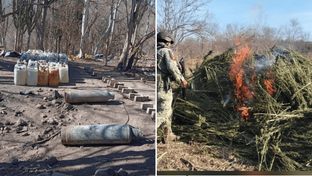 Durante acciones de seguridad en las zonas rurales de Culiacán, las autoridades localizaron dos secaderos de droga y zonas para guardar sustancias química para narco laboratorios, además de un laboratorio clandestino