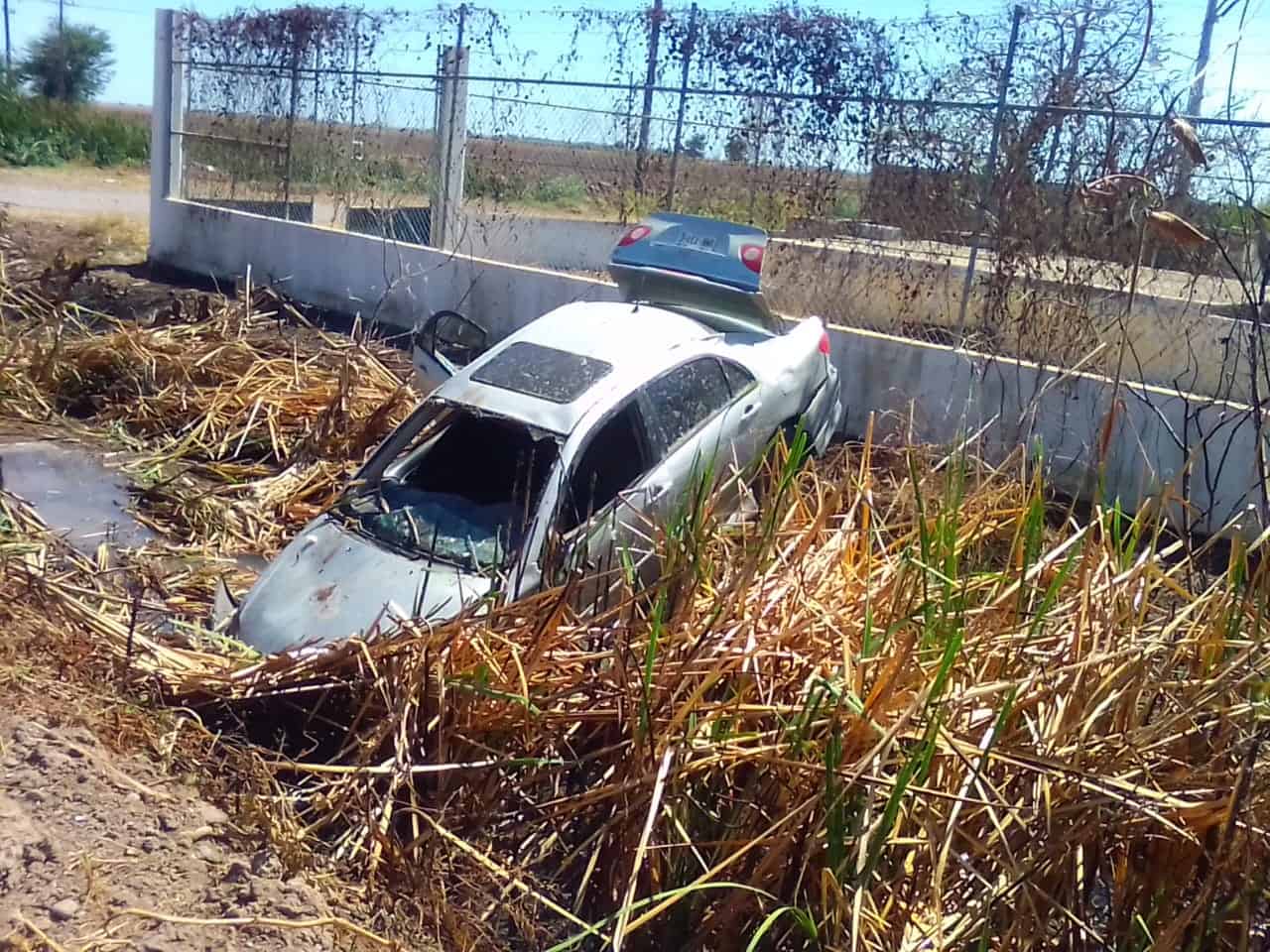 Conductora termina dentro de un canal de riego en Guasave