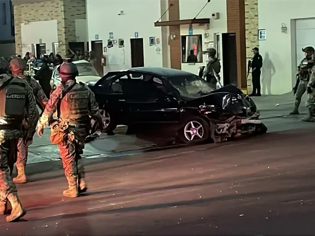 Los occisos quedaron a bordo de un vehículo Nissan Sentra de color negro que quedó completamente destrozado luego de que se impactara contra otro automóvil durante el enfrentamiento.