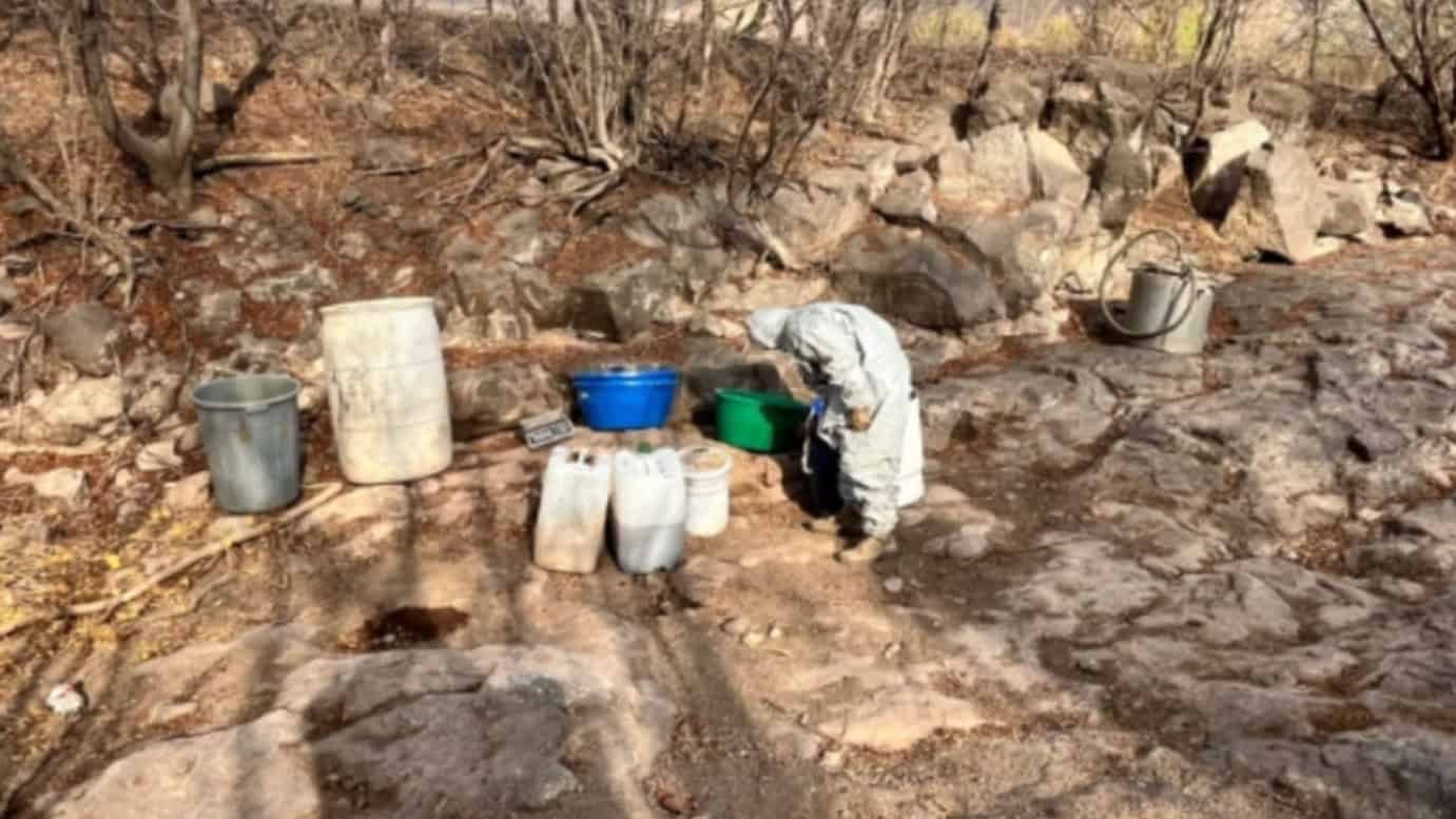Aseguran dos áreas de concentración de químicos, un laboratorio inactivo y un plantío de mariguana en Culiacán