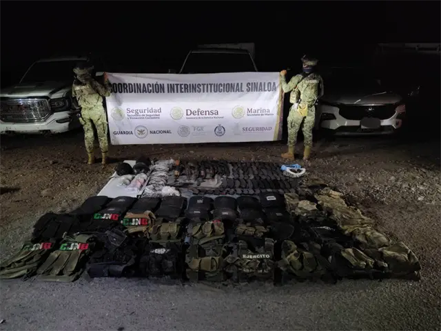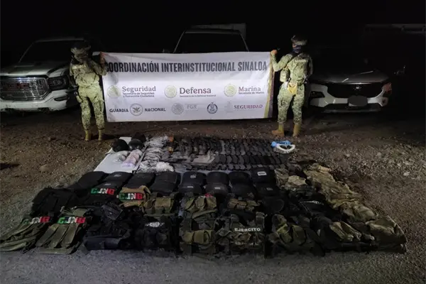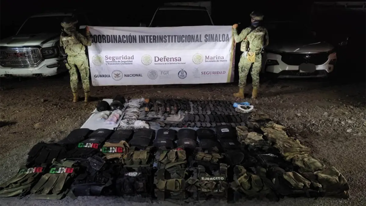 En un operativo realizado en la zona rural al norte de Culiacán, autoridades lograron el aseguramiento de una importante cantidad de objetos ilícitos, entre ello algunos chalecos tácticos con las siglas del Cártel Jalisco Nueva Generación.