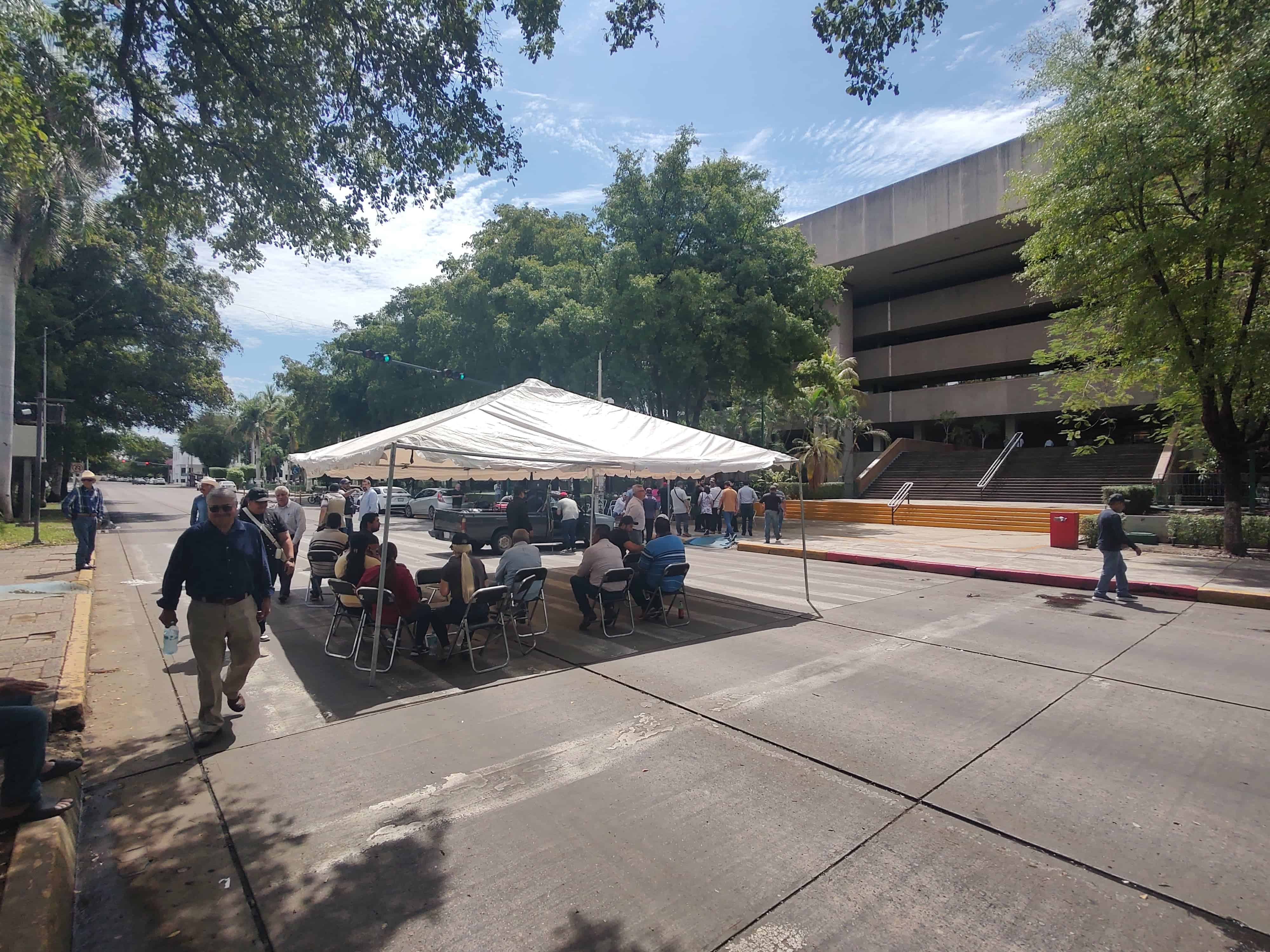 El diputado local morenista Serapio Vargas Ramírez cerró el bulevar Insurgentes junto al Palacio de Gobierno, en Culiacán, al liderar una manifestación de productores de caña de Eldorado.