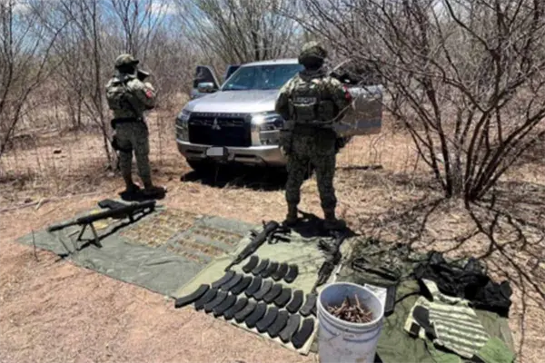 Al realizar trabajos de reconocimiento terrestre en las inmediaciones del poblado Estación Obispo, el personal militar localizó un vehículo de la marca Mitsubishi que resultó tener reporte de robo. Al inspeccionar la unidad encontraron lo siguiente: