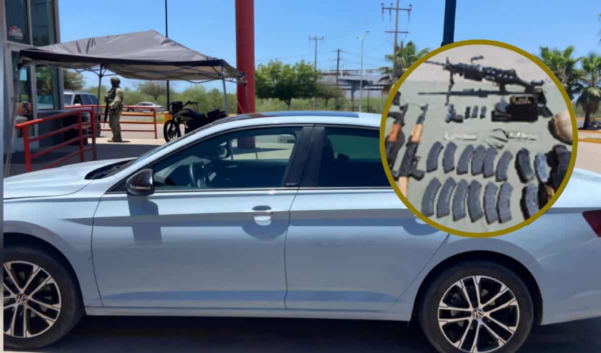 Durante acciones de reconocimiento por la carretera Navolato-Altata, en las inmediaciones del municipio de Navolato, el personal ubicó un vehículo Volkswagen Jetta, en cuyo interior se localizaron y aseguraron lo siguiente: