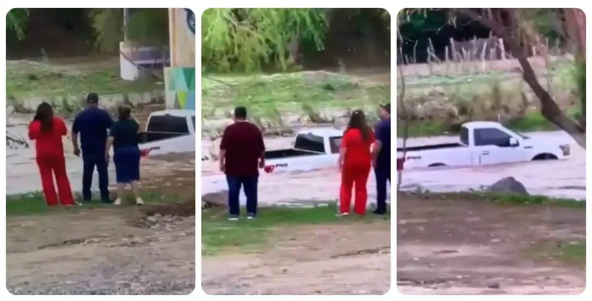 Por fortuna, los ocupantes lograron salir de la camioneta segundos antes de que fuera arrastrada por el caudal, y no se reportaron personas lesionadas.
