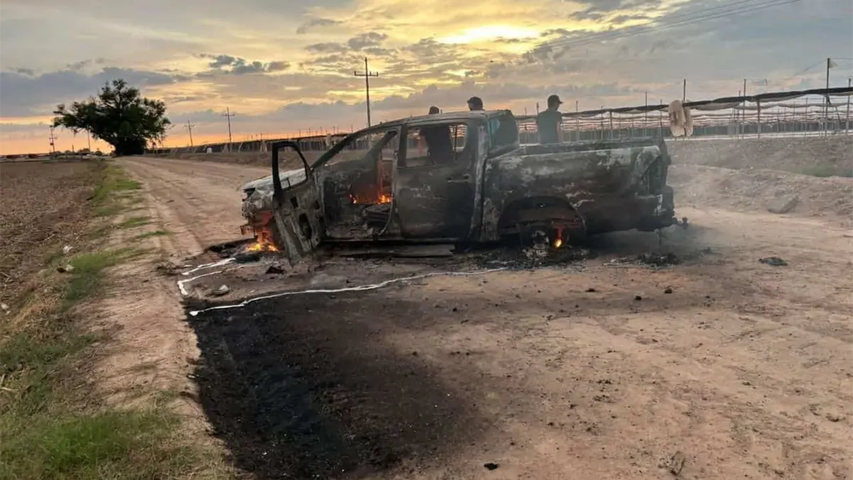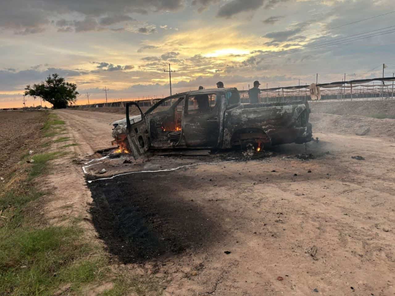 En uno de los caminos de terracería, se localizó una camioneta doble cabina incendiada.