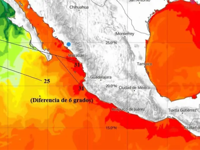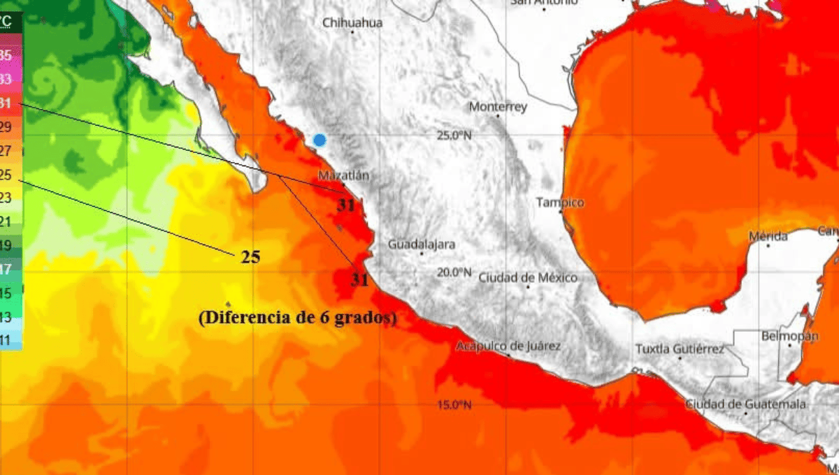 Ese fenómeno fue ampliamente documentado por investigadores de la UNAM y otras instituciones científicas; Sin embargo, la diferencia de temperaturas registrada actualmente en la costa nacional frente al océano abierto del Pacífico supera los 6.0 grados, lo que representa una anomalía térmica mayor a la del evento de 2015-2016.