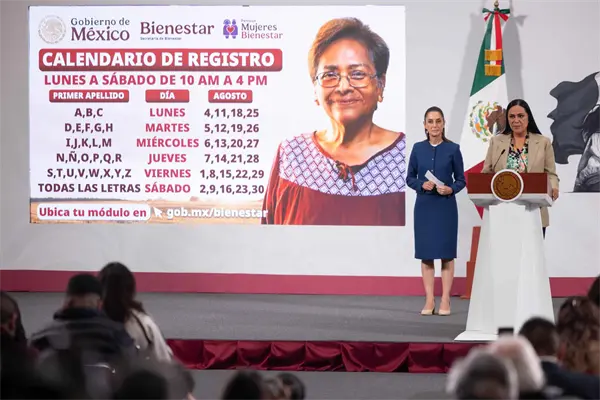 La secretaria de Bienestar, Ariadna Montiel Reyes, detalló que la Pensión Mujeres Bienestar ya la reciben más de un millón de mujeres de 63 y 64 años, por lo que ahora del 1 al 30 de agosto el registro se abre para todas las mujeres que tengan entre 60 a 64 años, quienes podrán realizar el trámite de lunes a viernes de las 10:00 horas a las 16:00 horas en los módulos que pueden ser ubicados en el sitio: https://www.gob.mx/bienestar.