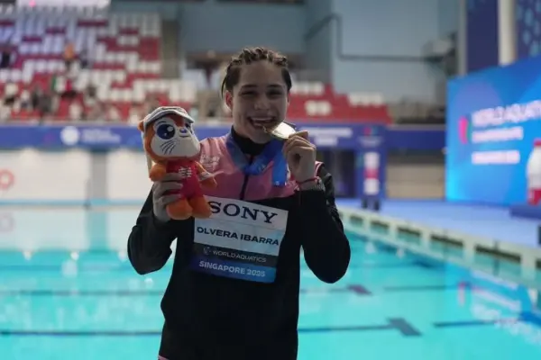 Olvera ya suma cuatro medallas en este Mundial de Deportes Acuáticos de Singapur; tiene tres de plata que consiguió en el trampolín de un metro, en parejas con Juan Celaya desde el trampolín de tres metros y en equipos mixtos.