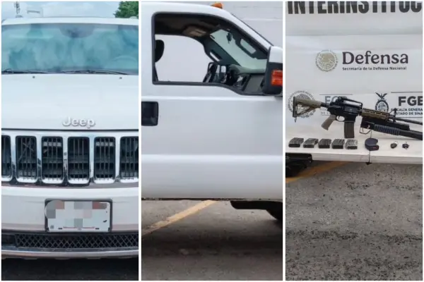 Elementos de la Secretaría de Seguridad Pública de Sinaloa, a través de la Policía Estatal Preventiva, en coordinación con el Ejército Mexicano, la Guardia Nacional, la Secretaría de Marina, la Secretaría de Seguridad y Protección Ciudadana, la Fiscalía General de la República y la Fiscalía General del Estado, aseguraron armamento y vehículos, uno de ellos con blindaje, en el municipio de Navolato.
