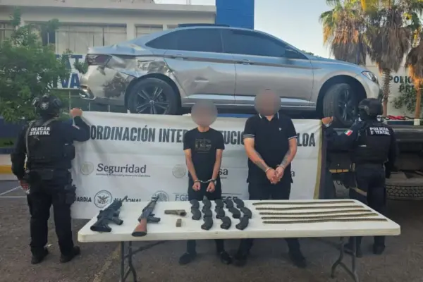 Detienen a dos sujetos con armas, cargadores, cartuchos y un vehículo robado en Culiacán