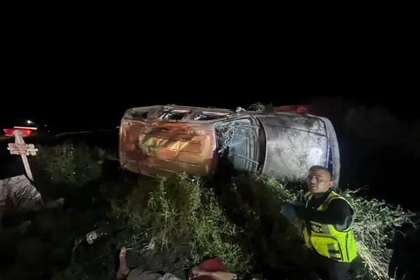 Caen a un bache en la México 15 y vuelcan en el Valle del Carrizo