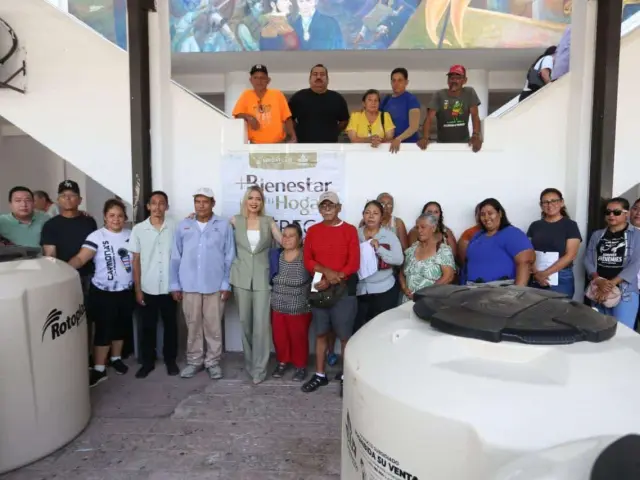 “Estamos haciendo ahorita mismo una entrega del programa ‘+ Bienestar para tu Hogar’, en el cual el día de hoy estamos entregando 130 tinacos de este programa, de una manera simultánea, unos se están entregando aquí en el Ayuntamiento, otros van a ser entregados en El Habal, Siqueros, Villa Unión y El Roble”, dijo.