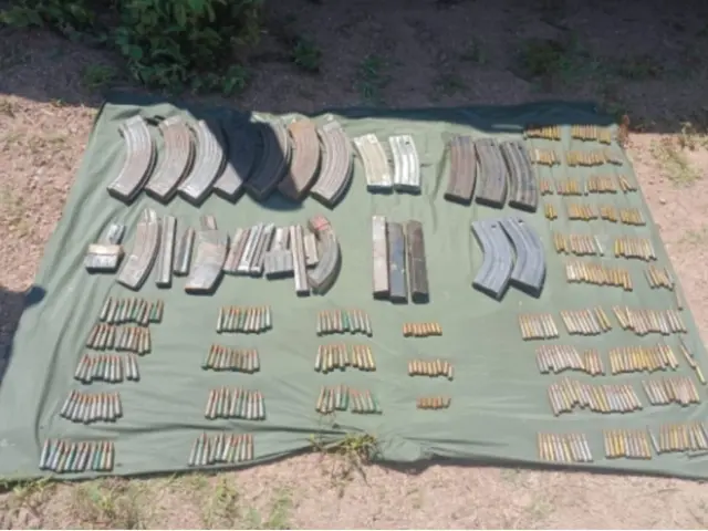 Elementos del grupo interinstitucional aseguraron una cubeta con cargadores y cartuchos en el poblado Batopito, municipio de Badiraguato.