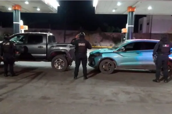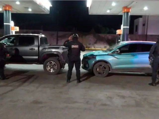 Durante patrullajes de reconocimiento y prevención sobre La Costerita, en inmediaciones de la colonia El Ranchito, los policías estatales observaron estacionadas y encendidas una camioneta Toyota Tacoma sin placas de circulación y otra unidad de la marca Geely, ambas sin tripulantes.