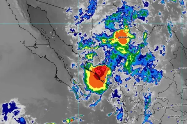 Este domingo, el monzón mexicano sobre el noroeste del territorio nacional interaccionará con inestabilidad atmosférica, originando lluvias puntuales muy fuertes en Sinaloa, Durango, Chihuahua y Sonora; puntuales fuertes en Nayarit; e intervalos de chubascos en Baja California Sur.